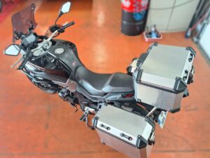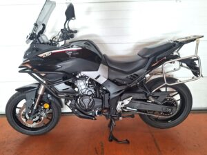 - Confort : hauteur de selle env. 815–830 mm, pare-brise, suspensions à grand débattement pour un usage route/tout-chemin