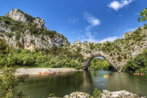 Principal centre touristique des gorges de l’Ardèche, cette ville offre de nombreux hôtels, campings, restaurants, bars, boutiques de souvenirs et locations de canoës. Pour la plupart des voyageurs, Vallon Pont d’Arc est le point de départ de la traversée des gorges, qui s’effectue en canoë ou par la route. En se promenant dans la ville à l’écart de la foule, le motard voyageur trouvera de jolies places anciennes et des rues rappelant celles des villages médiévaux de la région. L’hôtel de ville, construction de style Louis XIII, expose une belle collection de tapisseries d’Aubusson. Mais le spectacle le plus fascinant est le pont d’Arc, immense arche naturelle au-dessus de l’eau à l’entrée des gorges.