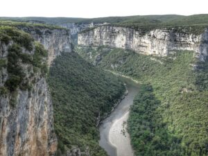 Le belvédère la Madeleine offre une des plus belles vues les hautes falaises des spectaculaires gorges de l’Ardèche.