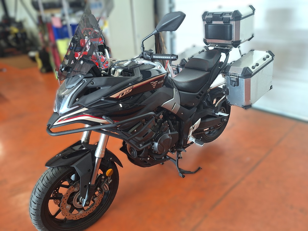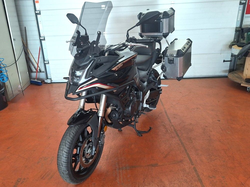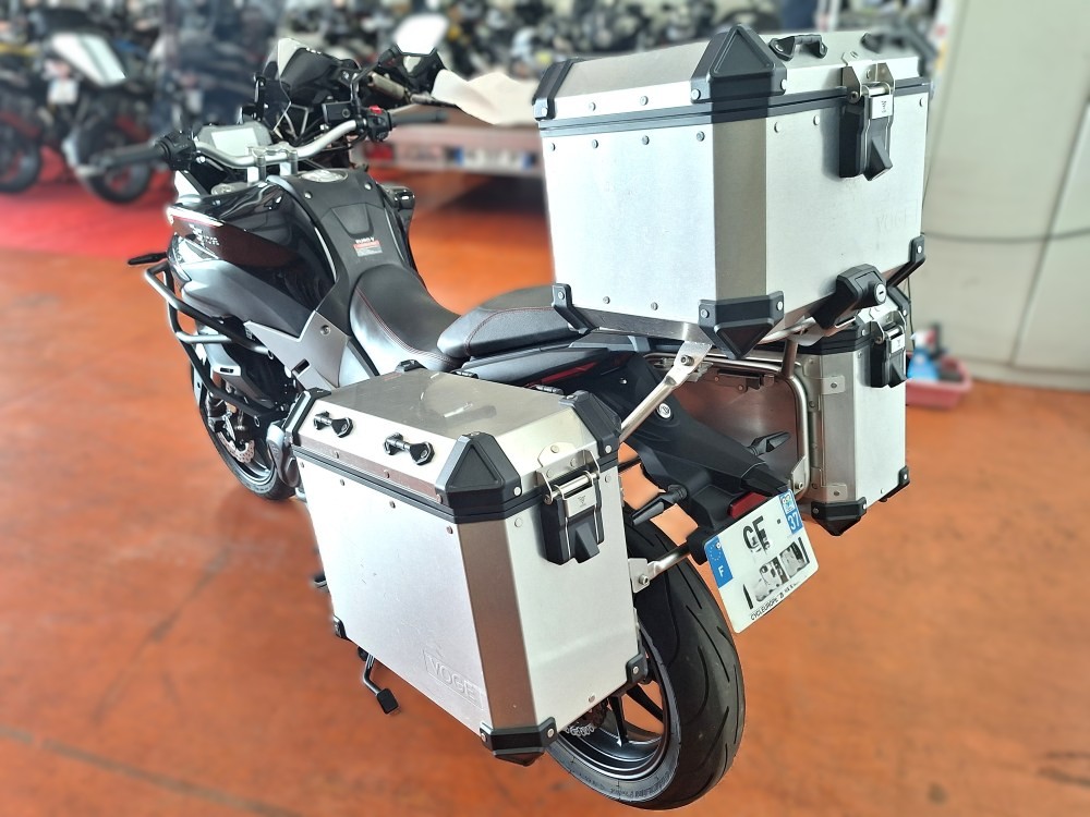 - Confort : hauteur de selle env. 815–830 mm, pare-brise, suspensions à grand débattement pour un usage route/tout-chemin