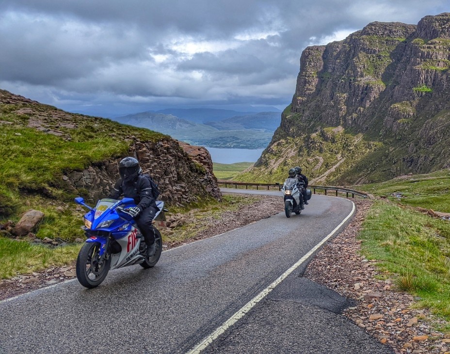 Parcourir l’Écosse à moto, c’est rouler au cœur de l’un des territoires les plus sauvages et préservés d’Europe. Dans les Highlands, les routes à voie unique – les fameux single tracks – offrent des panoramas grandioses entre mer, lochs et montagnes, quelles que soient les conditions météo. L’itinéraire suit en partie la North Coast 500, la célèbre route côtière qui dévoile les trésors du nord de l’Écosse.