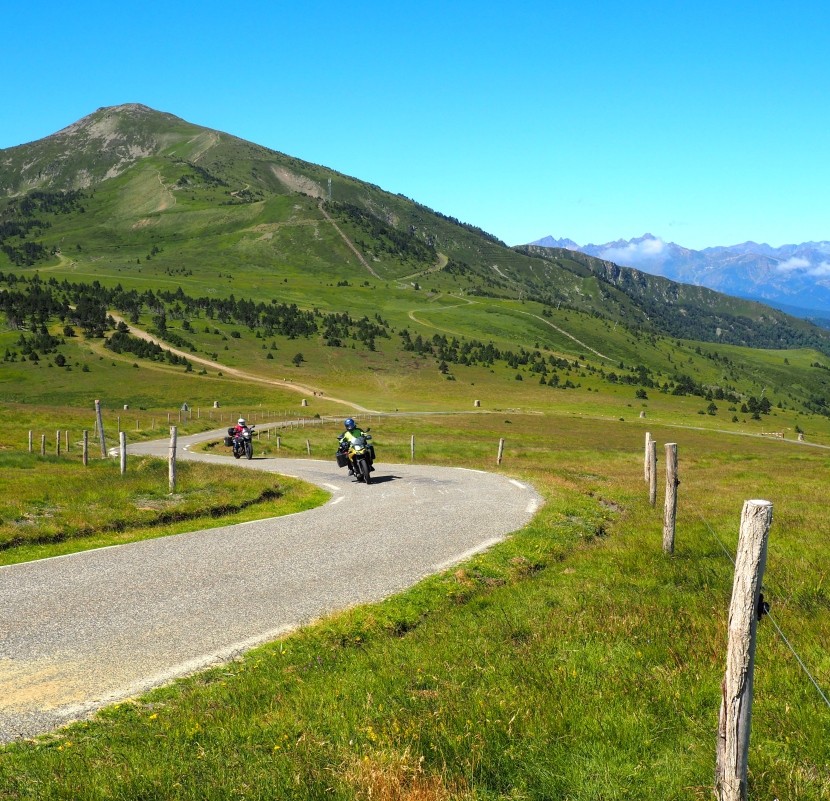 Entre vallées verdoyantes et sommets escarpés, vous alternerez entre versants français et espagnols pour profiter des plus belles routes à moto des Pyrénées. Vous ferez halte dans les villages emblématiques du massif — Ainsa, Villefranche-de-Conflent, Espelette ou Ainhoa — avant d’attaquer les routes spectaculaires de ses nombreux cols, véritables terrains de jeu pour les passionnés de virages.