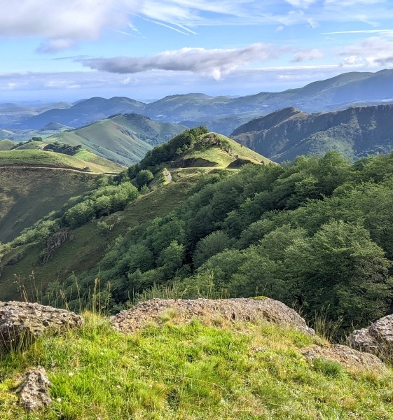 Début du parcours à travers le Pays Basque : la vallée de la Bidassoa, la corniche basque, les villages classés d’Ainhoa et d’Espelette, puis le col d’Ispéguy.